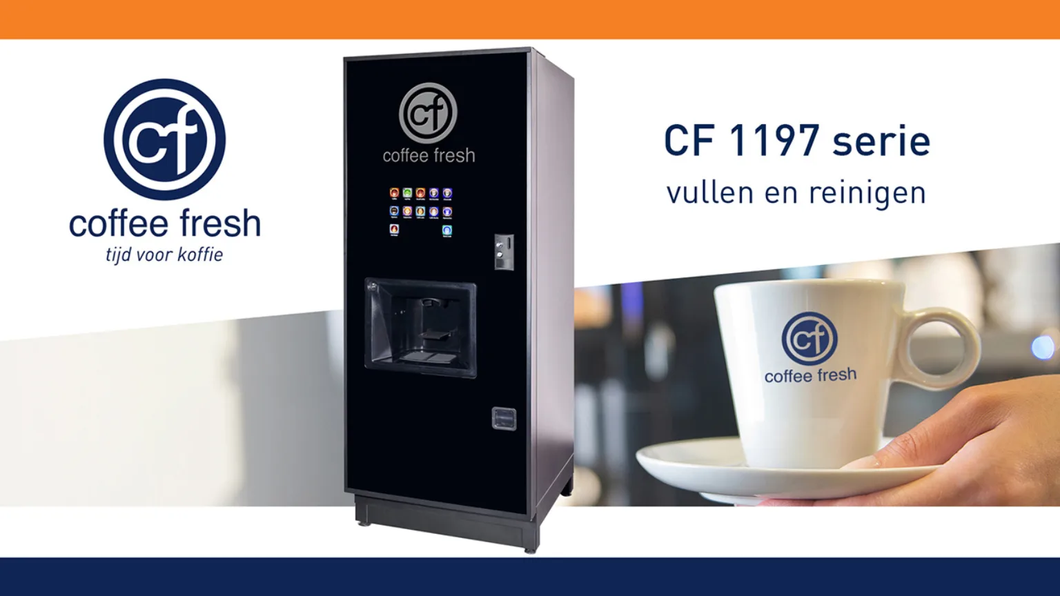 Om je medewerkers en klanten goede koffie en thee te kunnen schenken, is het van belang dat je je koffiemachine goed onderhoudt. De CF1197 is eenvoudig te reinigen door middel van een aantal stappen. In de instructievideo laten wij je graag zien hoe je de koffiemachine kunt schoonmaken en bijvullen.